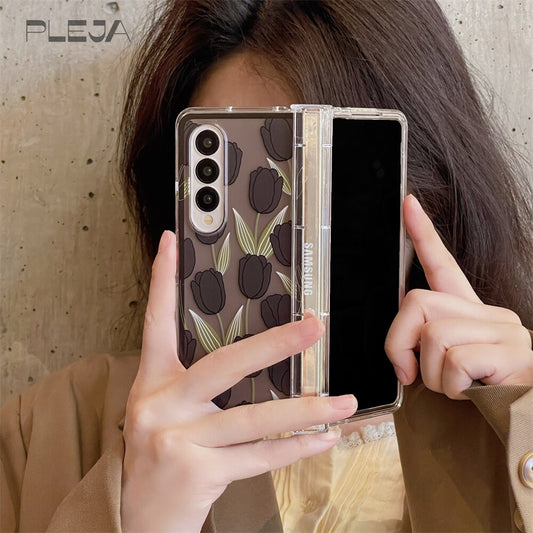 Cute Black Tulip Flower Phone Case For Samsung Galaxy Z Fold