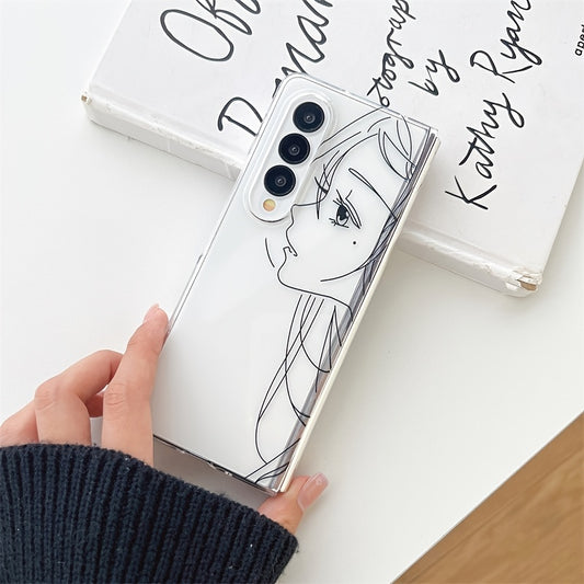 Cute Girl Simple Folding Drawing Phone Case For Galaxy Z Flip 3,Galaxy Z Flip 4,Galaxy Z Fold 3,Galaxy Z Fold 4